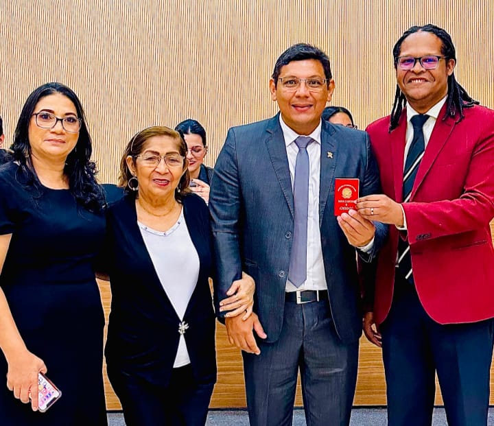 Após a leitura do Termo de Compromisso feito pela advogada Joyce Mariele Ramos Lobato, o presidente em exercício, Edvan Santos, passou a fazer a entrega das carteiras.