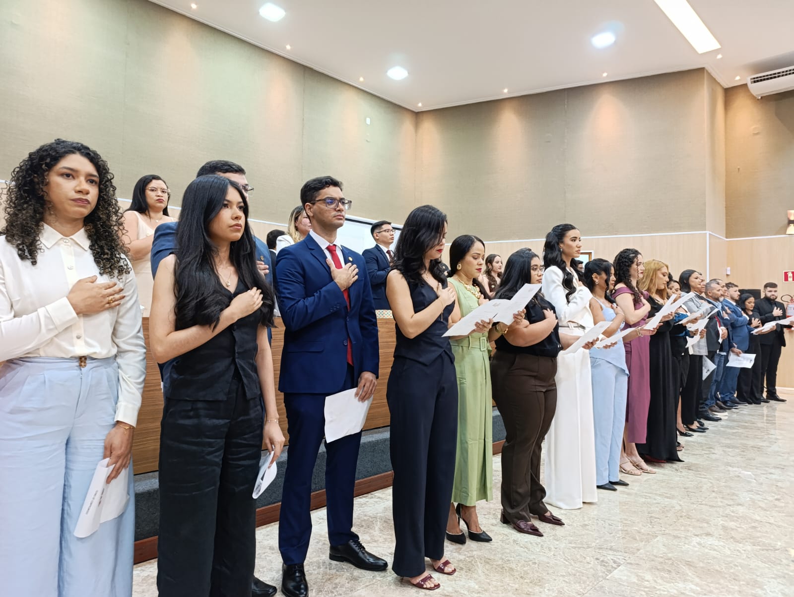 Durante seu pronunciamento, Israel da Graça destacou os grandes desafios que a advocacia enfrenta nos tempos atuais, parabenizando os recém-formados pela dedicação e estendendo o reconhecimento também aos familiares presentes. “A cada entrega de carteira, renovamos a força da advocacia. Que cada um dos senhores exerça a profissão com ética, coragem e compromisso social”, declarou.