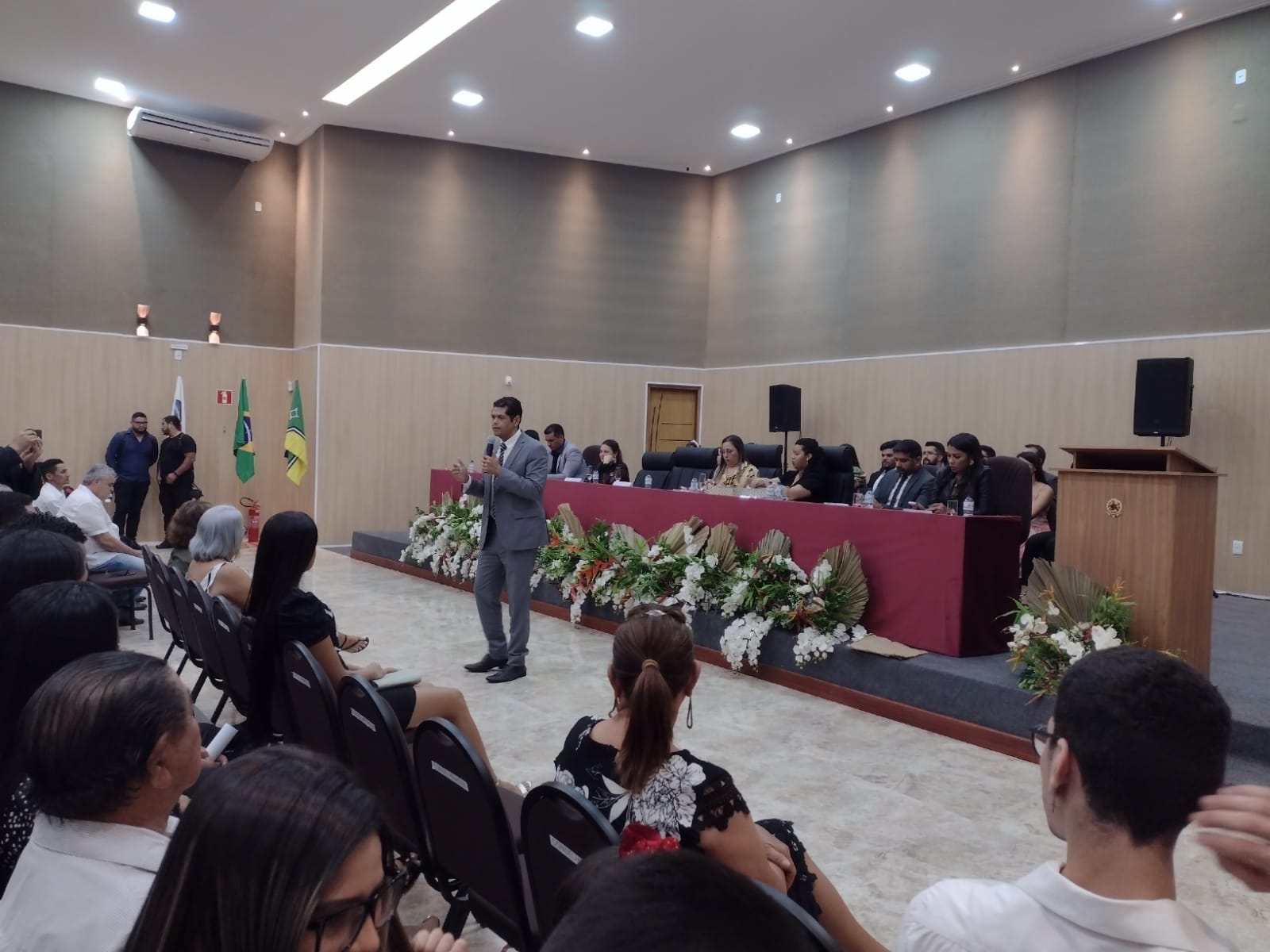 A solenidade foi conduzida pelo presidente Auriney Brito, que durante sua fala, deu boas-vindas aos novos profissionais, destacando a importância do exercício da advocacia para a sociedade, bem como o momento de superação de todos até receber a tão sonhada vermelhinha. “Agora vocês entram numa nova fase... Aqui neste momento de solenidade de um juramento pelo direito, pela justiça, pela integridade, pela ética... de um juramento pelo outro. O pacto da advocacia não está em que vocês vão resolver financeiramente para vocês. Mas com o social. Essa responsabilidade com o social vai mais além do que ser advogado”, pontuou.